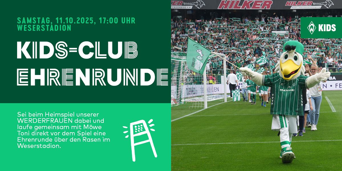 Du wolltest schon immer einmal wissen, wie es ist, über den Rasen im Weserstadion zu laufen? Dann melde dich jetzt für unsere Ehrenrunde vor dem Nordderby unserer WERDERFRAUEN gegen den Hamburger SV an.