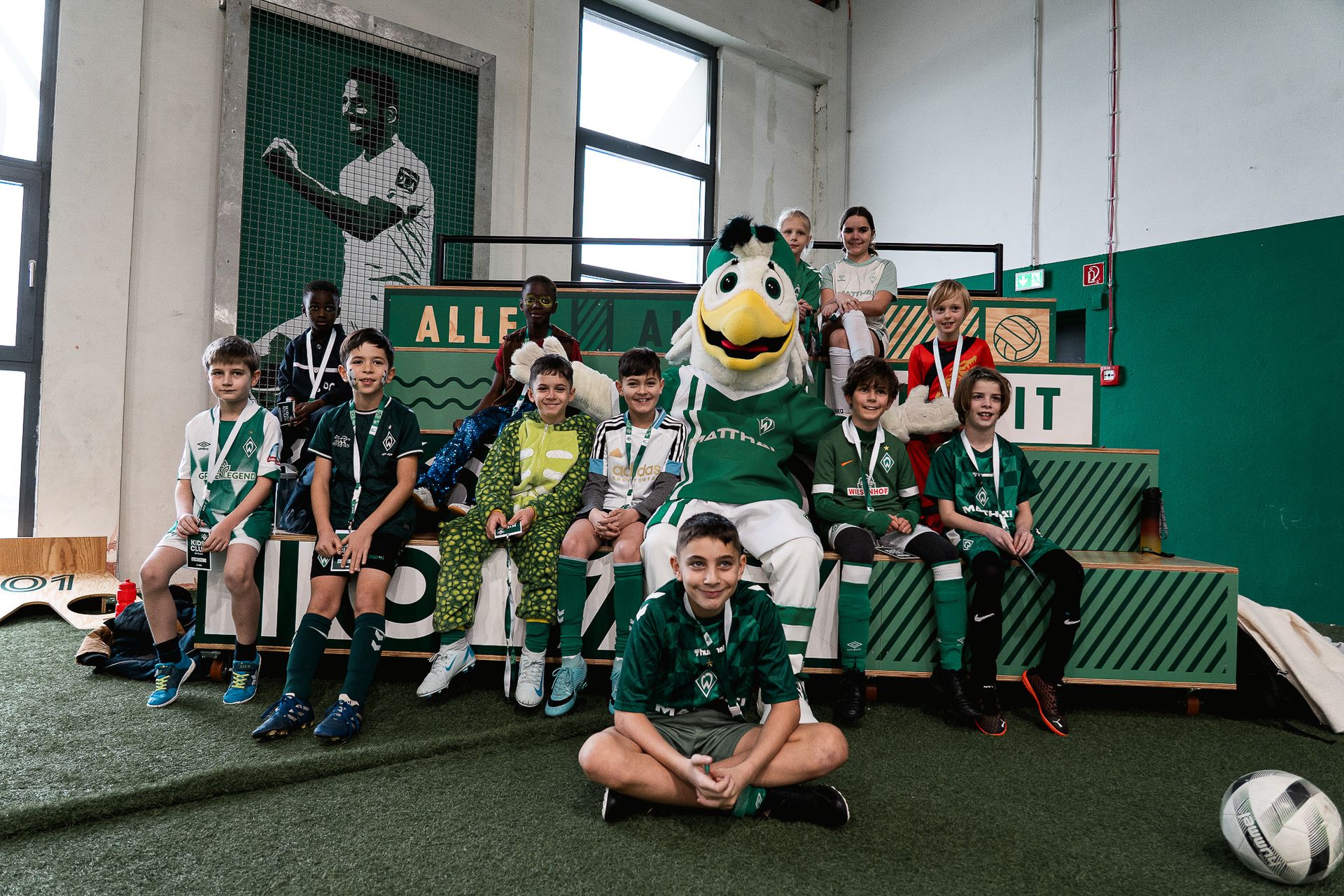 Zum ersten Mal lud der Kids-Club zum Faschingsturnier in die BOLZEREI ein. Ein bunter Mix aus Tieren, Superhelden, Werder-Fans und natürlich Fußballern versammelte sich auf den Courts. Nach einer herzlichen Begrüßung durch Möwe Toni ging es für die Teams "Piratenstürmer", "Zauberfüchse" und "Konfettikönige" richtig zur Sache. Dabei stand für die Kids im Alter von 6 bis 12 Jahren vor allem der Spaß und der Teamgeist im Vordergrund.