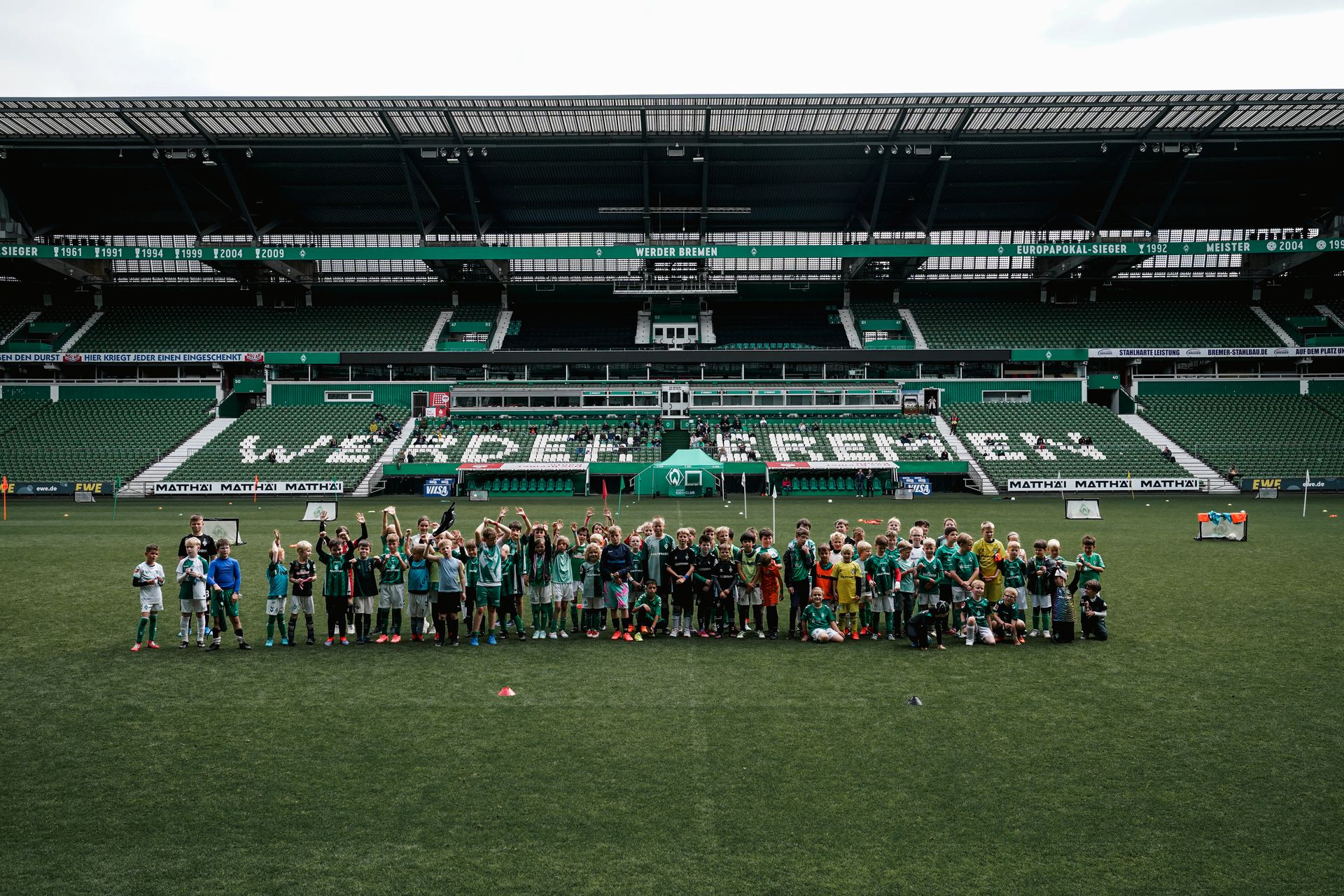 Einmal auf dem Rasen im Weserstadion kicken. Das sollte für 80 Kids-Club Mitglieder kein Traum mehr bleiben. Am 25.05. durften die Kids sich wie echte Fußball-Profis fühlen und dort spielen, wo sonst die die Werder Spieler*innen ihre Heimspiele austragen: auf dem Rasen im Weserstadion! Da leuchteten wahnsinnig viele Kinderaugen und zahlreiche Werder-Herzen schlugen höher.