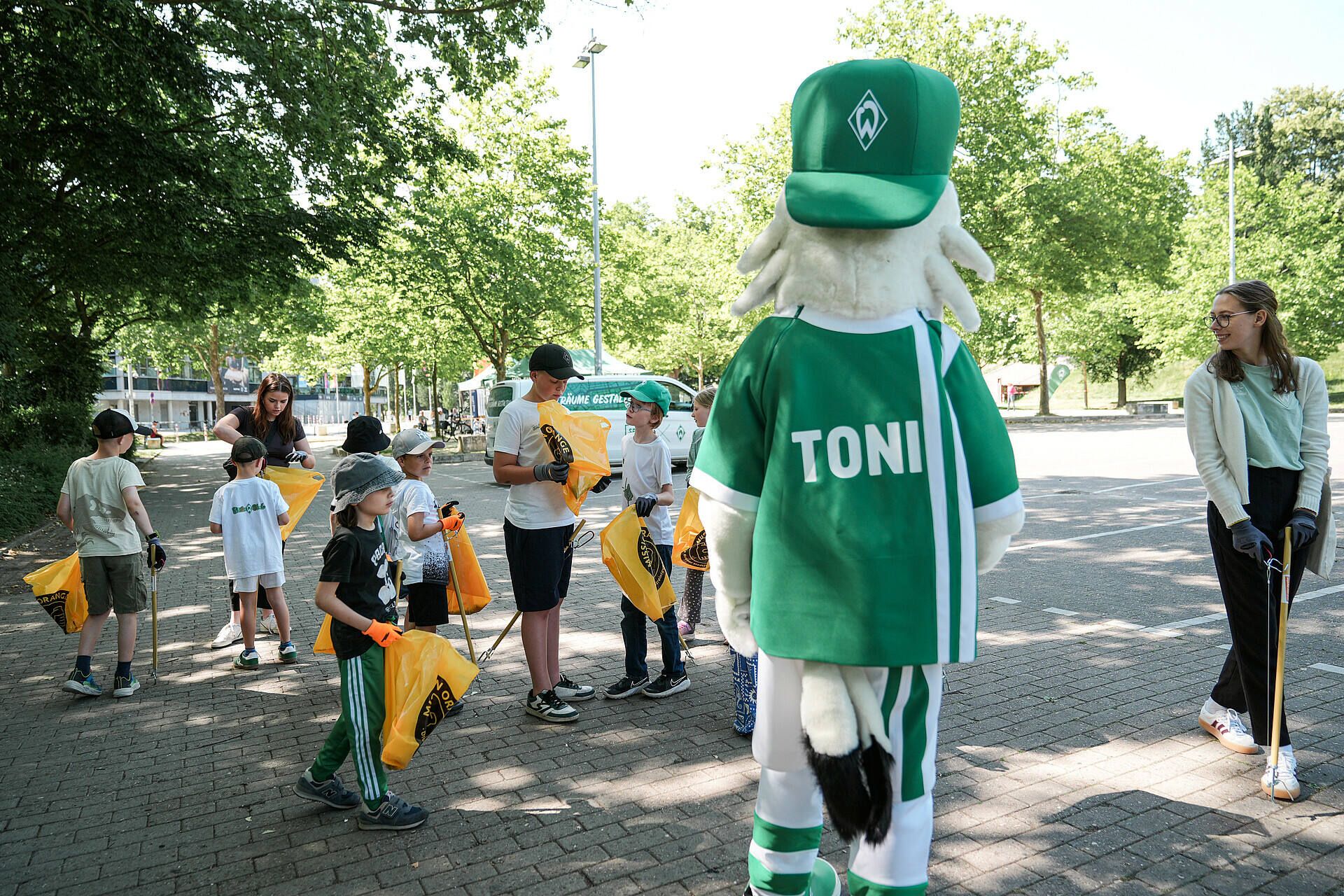 Zehn engagierte Kids-Club-Mitglieder waren mit dabei und haben zusammen mit Mitarbeitenden des SV Werder Bremen, Fans und natürlich Maskottchen Möwe Toni fleißig Müll gesammelt. Besonders im Fokus standen dabei Zigarettenkippen, die leider immer noch viel zu oft achtlos weggeworfen werden. Gemeinsam haben wir eine beachtliche Menge zusammengetragen und Tonis Zuhause so ein wenig sauberer gemacht.