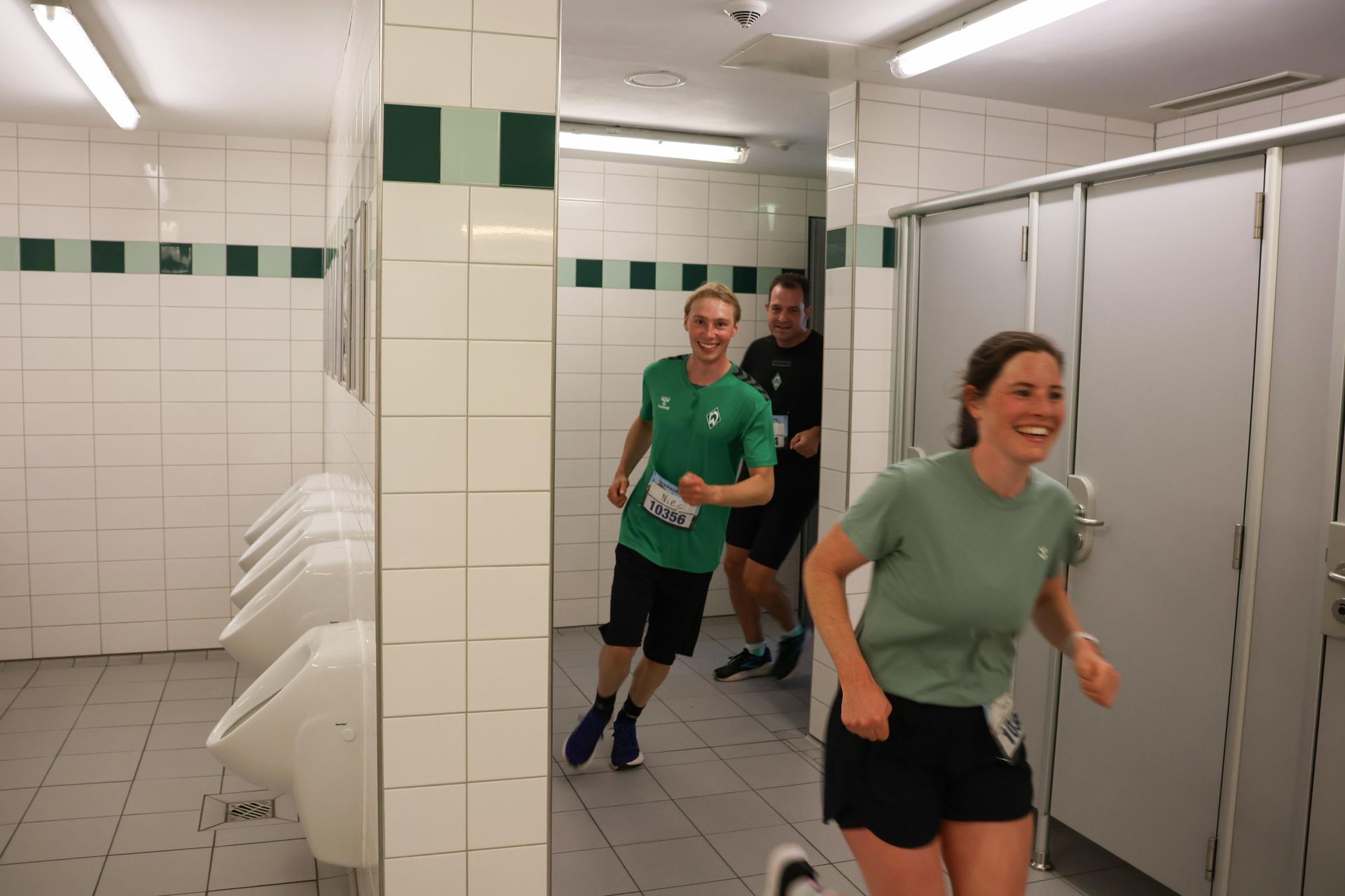 Vom Gastgeber SV Werder Bremen waren selbstverständlich auch zahlreiche Athletinnen und Athleten dabei, die zum einen als Testläufer im Vorfeld des Events als auch direkt am Hauptlauf präsent waren. Anna Pape erreichte beispielsweise im Hauptlauf bei den Frauen einen hervorragenden zweiten Platz und strahlte vor Begeisterung. Sie sagte nach dem Lauf: „Wir sind an Stellen im Stadion langgelaufen, da war selbst ich als langjährige Werderanerin noch nie. Ein wirklich tolles und empfehlenswertes Event.“