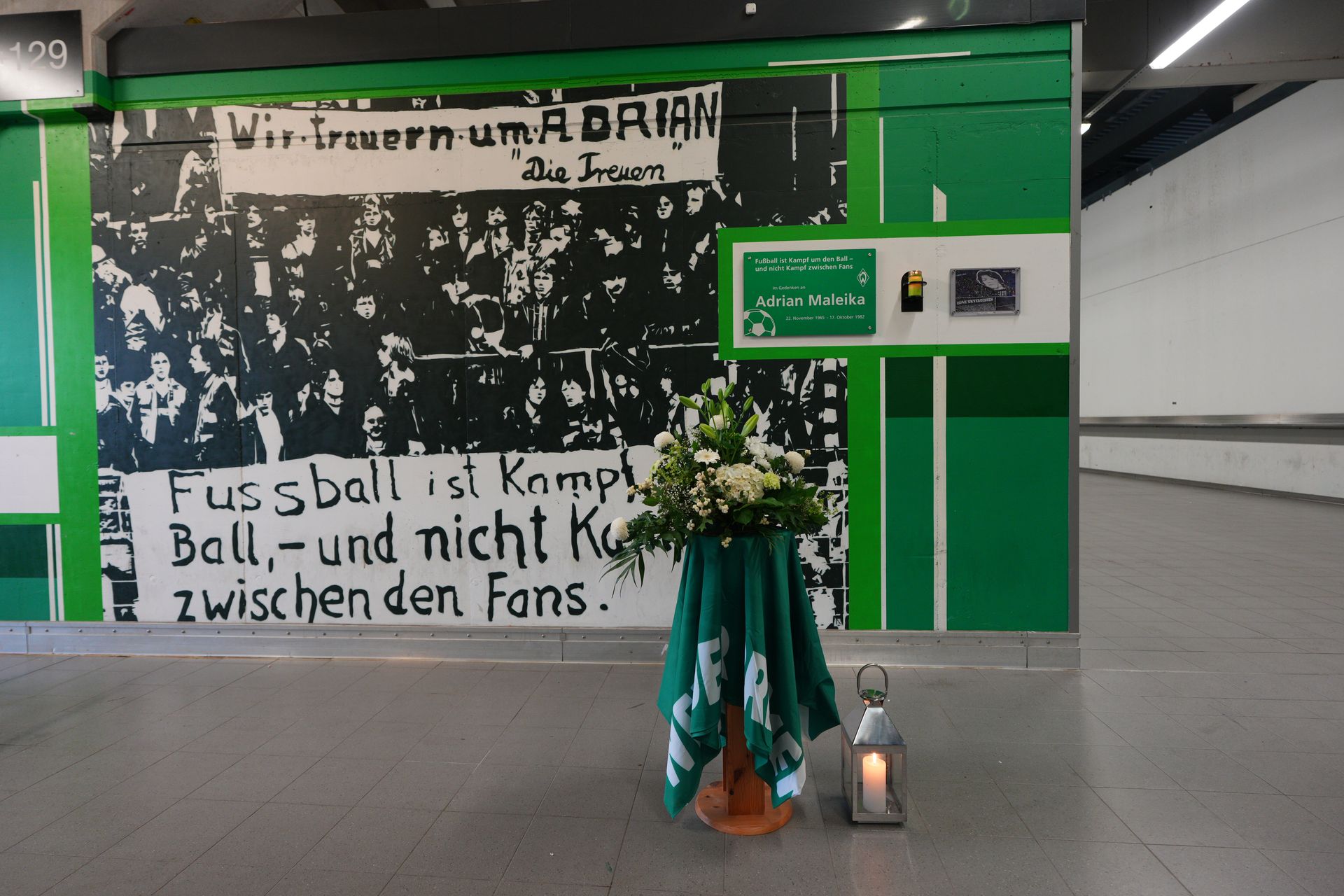 +++ 43 Jahre danach: Heute jährt sich der Todestag von Adrian Maleika zum 43. Mal. Der 16-jährige Werder-Fan starb am 17. Oktober 1982 nach einer gewalttätigen Auseinandersetzung zwischen Fans des Hamburger SV und Werder vor dem DFB-Pokalspiel im Hamburger Volksparkstadion. Sein Schicksal steht bis heute als mahnendes Beispiel dafür, wie schnell sportliche Rivalität in tödliche Gewalt umschlagen kann – eine Erinnerung, die der SVW in stillem Gedenken mit einem Blumenkranz und einer Kerze an der Gedenkwand im Weserstadion aufrecht hält. +++