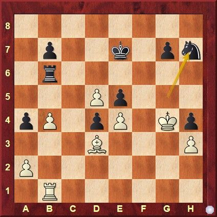 Bernd Laubsch gelang es, mit den schwarzen Steinen Carlos Schat geduldig zu überspielen und in ein gewonnenes Endspiel abzuwickeln. In beiderseitiger Zeitnot gab es dann noch eine kleine Komödie der Irrungen: erst griff Bernd fehl und ermöglichte in der Diagrammstellung mit 38.Kf5! starkes Gegenspiel. Carlos bemerkte das ebenfalls nicht und lief stattdessen in ein fein gesponnenes Mattnetz. Nach 38.Kxh4 Tg6! nebst 39...Sf6 und 40...Tg2 droht entscheidend 41...g5 Matt!Eine spannende Partie lieferten sich auch Thomas Büttner und Rolf Hundack. Zunächst sah Thomas wie der sichere Sieger aus und konnte in ein Turmendspiel mit zwei Mehrbauern abwickeln. Aber Rolf verteidigte sich erfinderisch und sein letzter Freibauer schaffte es unbeschadet unter Turmopfer zur Grundreihe. Allerdings hatte Thomas dann keine Mühe, mit Turm und 2 Bauern gegen Dame eine Remisfestung aufzubauen.