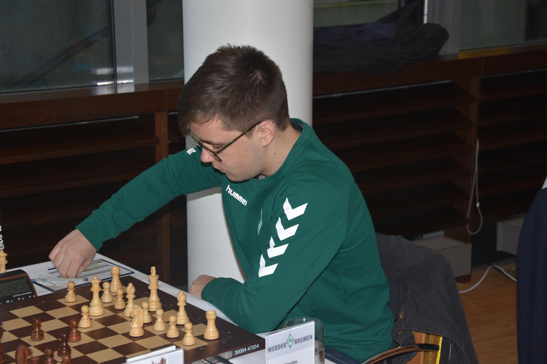 Im GM-Turnier spielen unter anderem zwei Werderaner IM Nikolas Wachinger und IM Collin Colbow mit. Nikolas hat in der ersten Runde eine sehr starke Partie gespielt und gewonnen. Alle anderen Partien endeten remis.