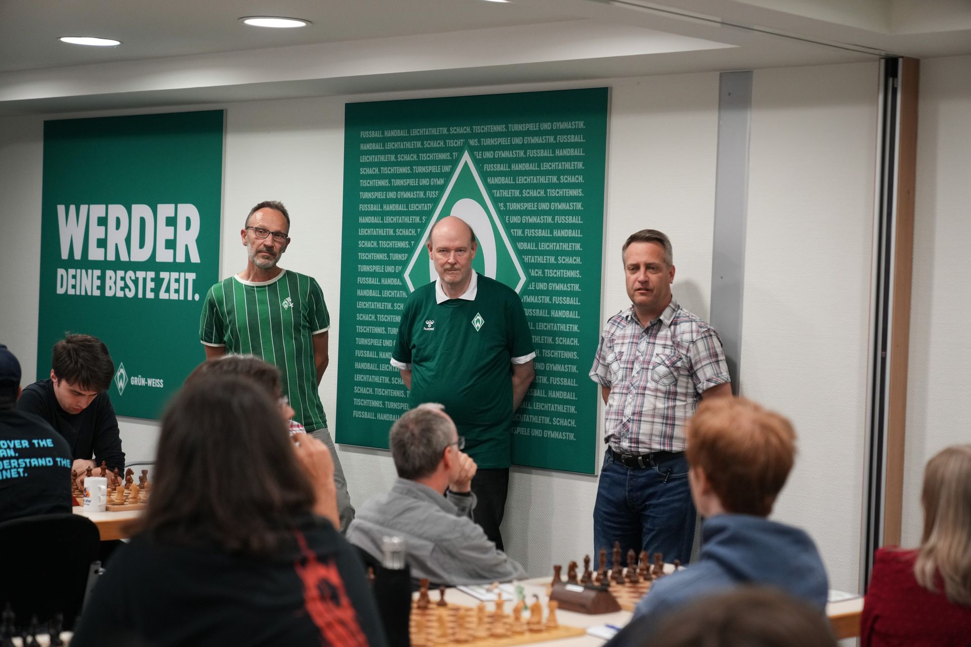 Eine besondere Ehre und eine hohe Anerkennung der Arbeit der Schachabteilung war der Besuch von Werders Vizepräsidentin Claudia Lasch, die der Einladung von Dr. Oliver Höpfner gefolgt war und sich ein Bild machte vom Schachturnier und von den umgestalteten Räumlichkeiten im Clubraum der Hemelinger Straße. Ebenfalls zu Gast war Werder-TV, was uns tolle Bilder von allen Teilnehmern beschert hat und ein interessantes Interview (Video) mit Olaf Steffens und Eindrücken von der Eröffnung!