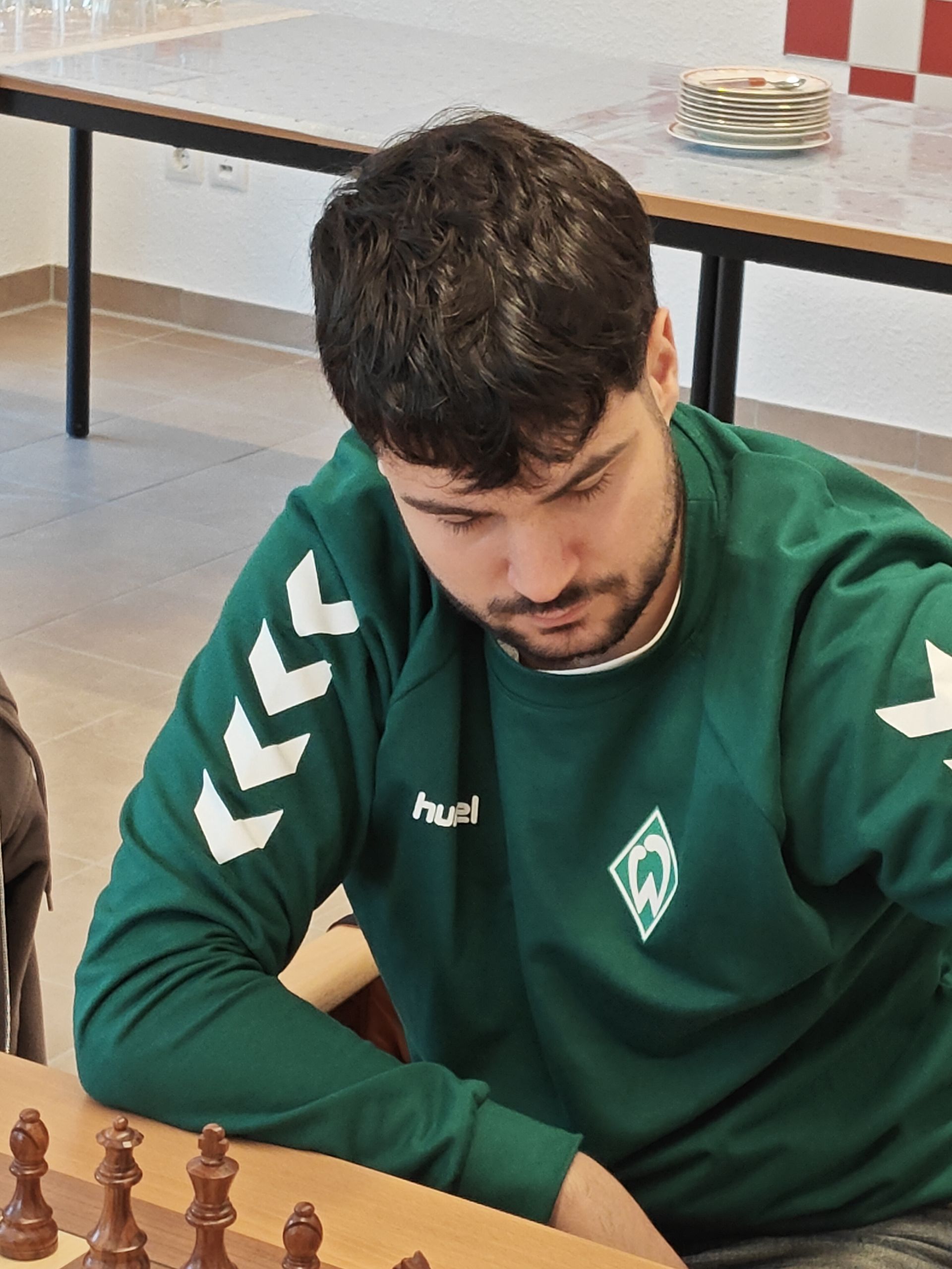 Collin spielte mit Schwarz seine Lieblingsvariante im Sizilianer. Im Mittelspiel opferte er den h7-Bauern – ein typisches Motiv in dieser Struktur. Durch das Läuferpaar und Initiative im Zentrum sowie auf dem Damenflügel hatte er über weite Strecken genug Kompensation. Die Partie verlief äußerst turbulent: Zwischenzeitlich stand Collin auf Gewinn, dann war die Stellung ausgeglichen, später wieder unklar. In beiderseitiger Zeitnot entstand am Ende leider ein verlorenes Endspiel, das er nicht mehr retten konnte.