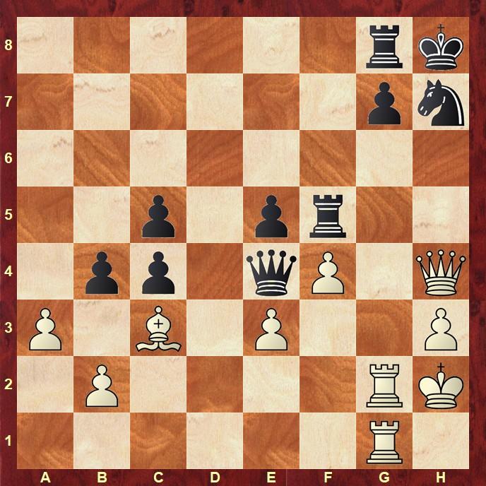 In der Diagrammstellung folgte der elegante Zug 32.Tg4!! mit der Drohung Dxh7 und anschließend Th4#. Gleichzeitig war der f-Bauer nicht mehr gefesselt, und der schwarzfeldrige Läufer übernahm aktiv die Kontrolle über die lange Diagonale. Kurz darauf wickelte Martin ins Turmendspiel mit zwei Mehrbauern ab und gewann dieses problemlos.
