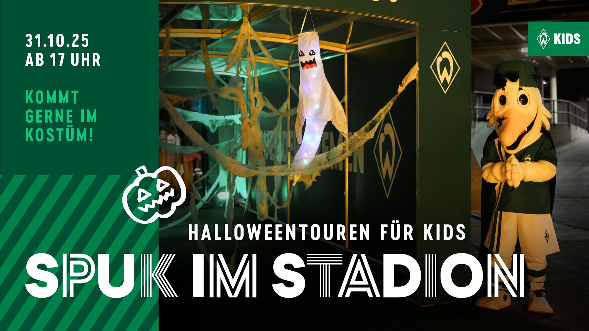 Taucht ein in unser schauriges grün-weißes Wohnzimmer und erlebt eine Stadionführung der gruseligen Art. Verkleidung ist dabei ausdrücklich erwünscht und wird am Ende der Tour mit einer süßen Belohnung gewürdigt. Auch unser Maskottchen Toni lässt sich dieses Event nicht entgehen und wird euch während der Tour durch das dunkle Stadion begrüßen.