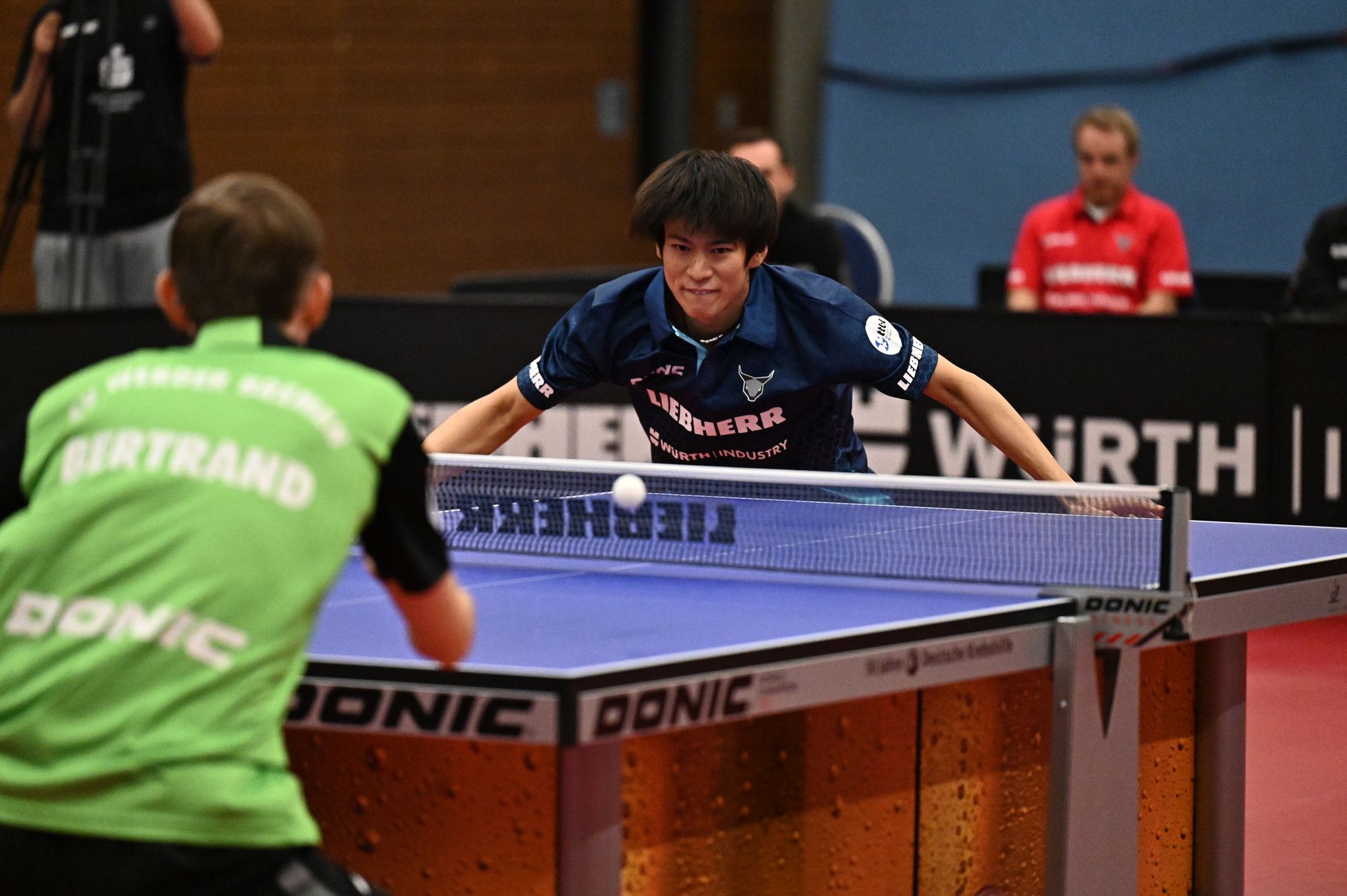Ein Punkt von Kirill Gerassimenko durch einen 3:1-Pflichtsieg gegen das TTF-Talent Tiago Abiodun war für die Grün-Weißen nicht genug zur Einstellung ihres Startrekordes von vier Siegen zum Saisonauftakt aus den Jahren 2019 und 2024. Aufgrund der auch persönlich ersten Saisonniederlagen von Irvin Bertrand und Mattias Falck verlor das Team von Werder-Trainer Cristian Tamas auch seine bisherige Tabellenführung an den wieder punktgleichen Rivalen TTC Schwalbe Bergneustadt. Den entscheidenden Punkt gab Gerassimenko im Spitzeneinzel mit einem 0:3 gegen Doppel-Weltmeister Shunsuke Togami (Foto: Vincenz Bendel) ab.